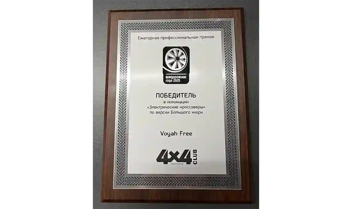 VOYAH FREE СТАЛ ПОБЕДИТЕЛЕМ НАЦИОНАЛЬНОЙ ПРЕМИИ «ВНЕДОРОЖНИК ГОДА» В РОССИИ